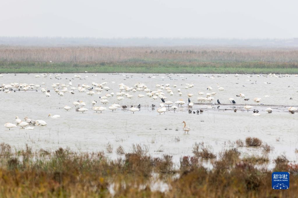 這是11月22日在上海崇明東灘鳥(niǎo)類國(guó)家級(jí)自然保護(hù)區(qū)拍攝的棲息的各種鳥(niǎo)類。新華社記者 王翔 攝