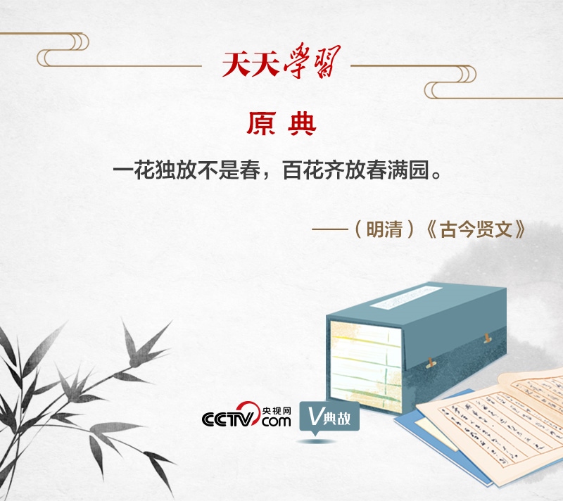 “一花獨放不是春,百花齊放春滿園”,意思是,一枝單獨開放的花朵不能代表春天的到來,只有百花競艷才是人間春色。這句民諺之所以廣為流傳,是因為飽含深刻哲理:一、闡述了整體和部分的辯證關系,“一花”是部分,“百花”是整體,部分的功能是較小的,要以整體發(fā)展帶動部分發(fā)展;二、體現(xiàn)了聯(lián)系的觀點,聯(lián)系具有普遍性,“一花”和“百花”是相互聯(lián)系的,因此要尊重文化的多樣性;三、說明了事物是客觀的和發(fā)展變化的,“百花齊放”是必然的,因此要順應歷史潮流。
