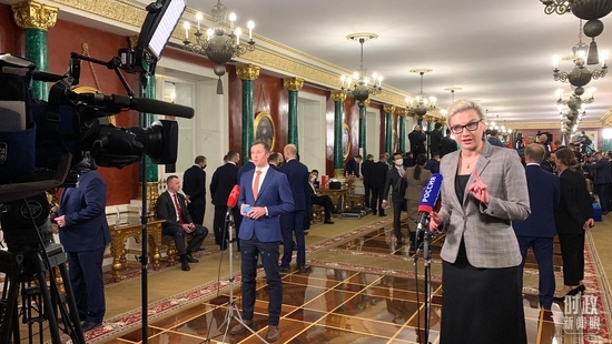 習(xí)主席當(dāng)天在克里姆林宮的活動(dòng)從下午持續(xù)到晚上。兩國(guó)元首先后舉行小范圍、大范圍會(huì)談。會(huì)談后,兩國(guó)元首共同簽署了兩份重磅聯(lián)合聲明,并共同會(huì)見記者。當(dāng)晚,普京總統(tǒng)還為習(xí)主席舉行了隆重的歡迎宴會(huì)。