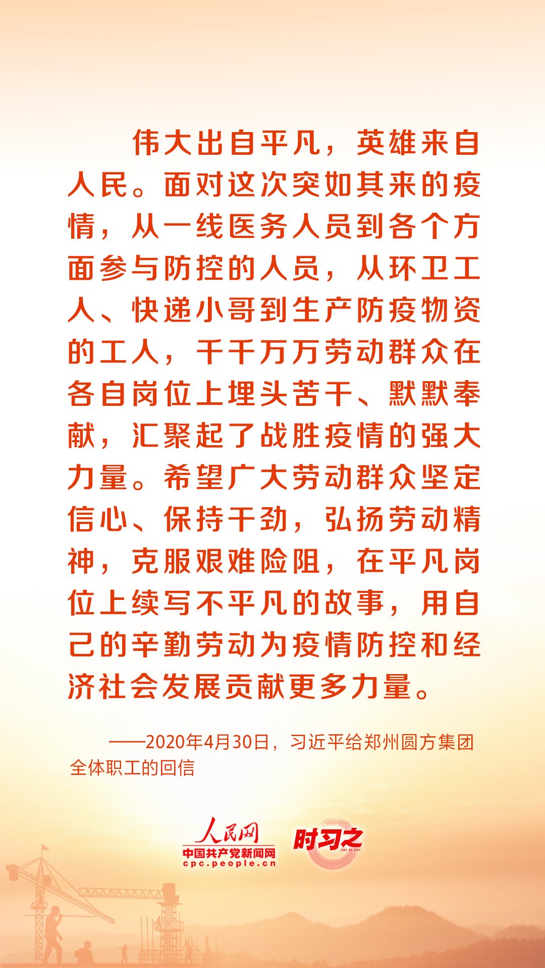 人民創(chuàng)造歷史,勞動(dòng)開(kāi)創(chuàng)未來(lái)。黨的十八大以來(lái),習(xí)近平總書(shū)記始終心系全國(guó)廣大勞動(dòng)者,激勵(lì)廣大勞動(dòng)者在平凡崗位上續(xù)寫(xiě)不平凡的故事。在“五一”國(guó)際勞動(dòng)節(jié)到來(lái)之際,讓我們重溫總書(shū)記的諄諄話語(yǔ),用辛勤勞動(dòng)為經(jīng)濟(jì)社會(huì)發(fā)展貢獻(xiàn)力量。