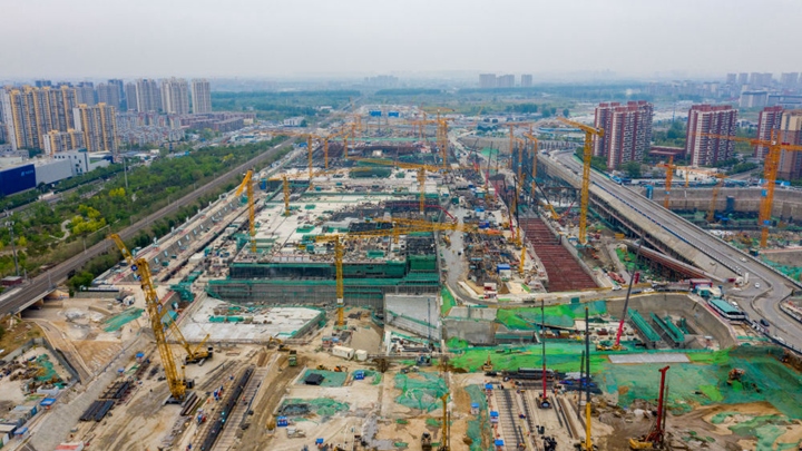 這是在北京市通州區(qū)拍攝的建設(shè)中的北京城市副中心站綜合交通樞紐(2023年4月23日攝,無人機(jī)照片)。新華社發(fā)(北京城建集團(tuán)供圖)