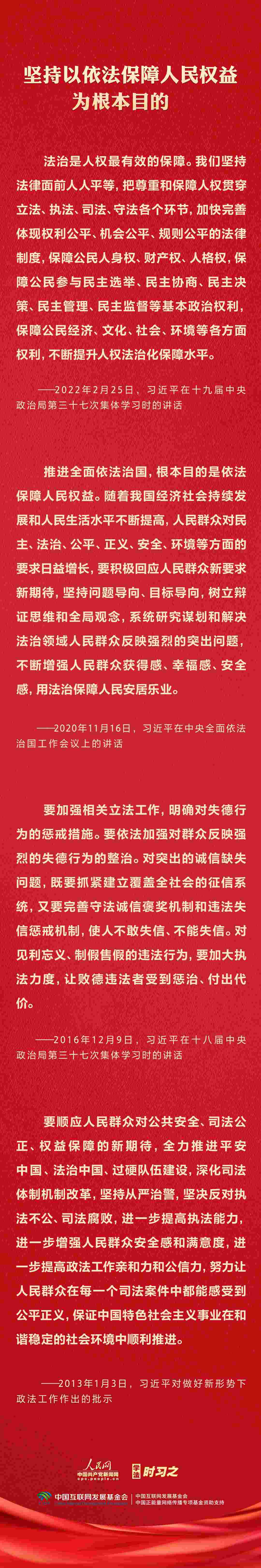 今年是貫徹落實(shí)黨的二十大精神的開(kāi)局之年。中共中央政治局決定從今年4月開(kāi)始,在全黨自上而下開(kāi)展學(xué)習(xí)貫徹習(xí)近平新時(shí)代中國(guó)特色社會(huì)主義思想主題教育。習(xí)近平法治思想是習(xí)近平新時(shí)代中國(guó)特色社會(huì)主義思想的重要組成部分,人民網(wǎng)·中國(guó)共產(chǎn)黨新聞網(wǎng)推出學(xué)法時(shí)習(xí)之·學(xué)習(xí)習(xí)近平法治思想系列策劃,本篇聚焦“堅(jiān)持以人民為中心”。