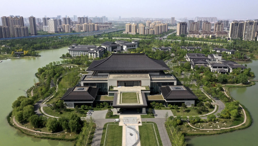 位于西安浐灞生態(tài)區(qū)的西安國際會議中心(4月16日攝,無人機(jī)照片)。新華社記者 劉瀟 攝