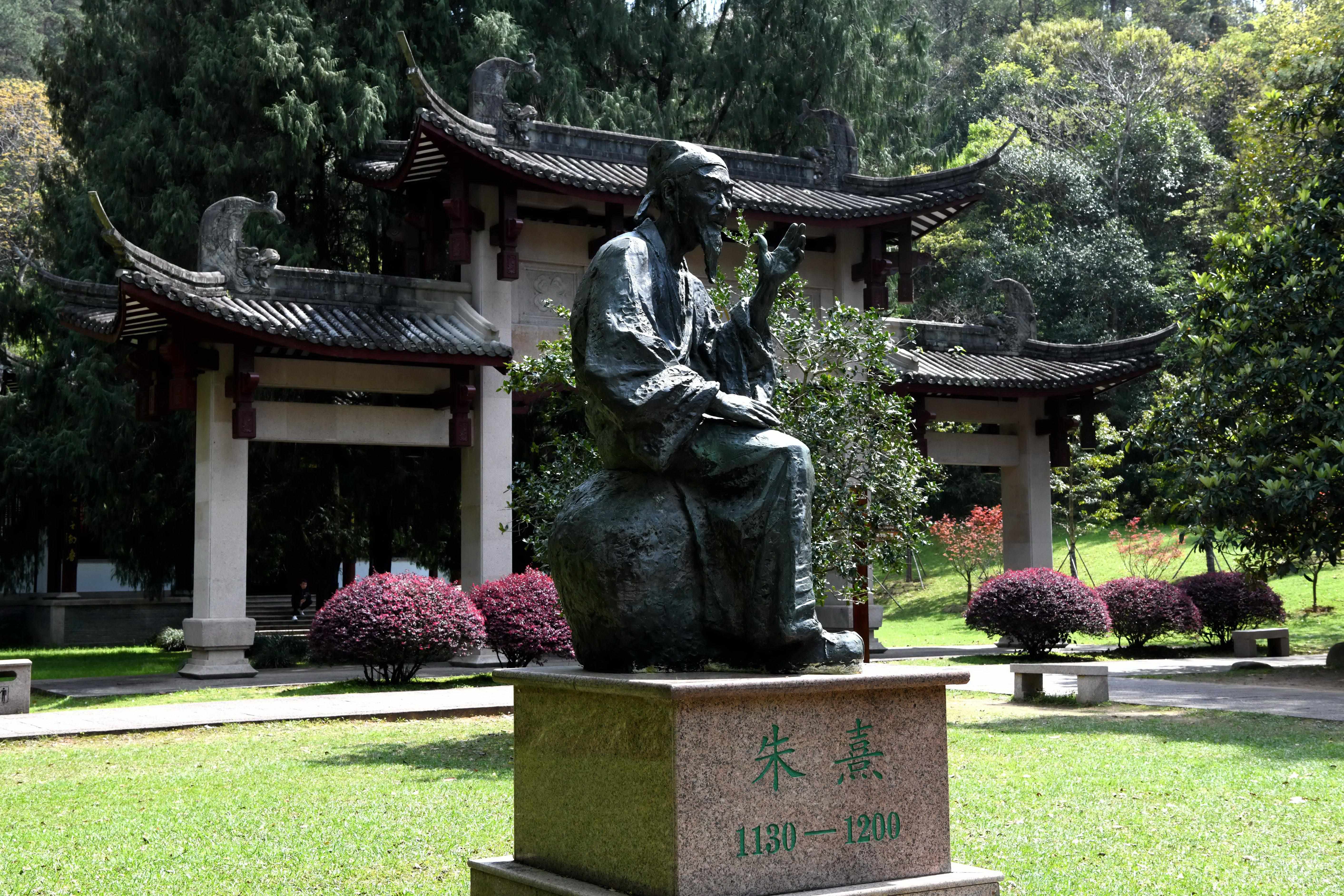 △福建武夷山朱熹園門口的朱熹雕塑。朱熹園是武夷山世界文化遺產(chǎn)的核心部分,也被譽為朱子理學的“搖籃”。
