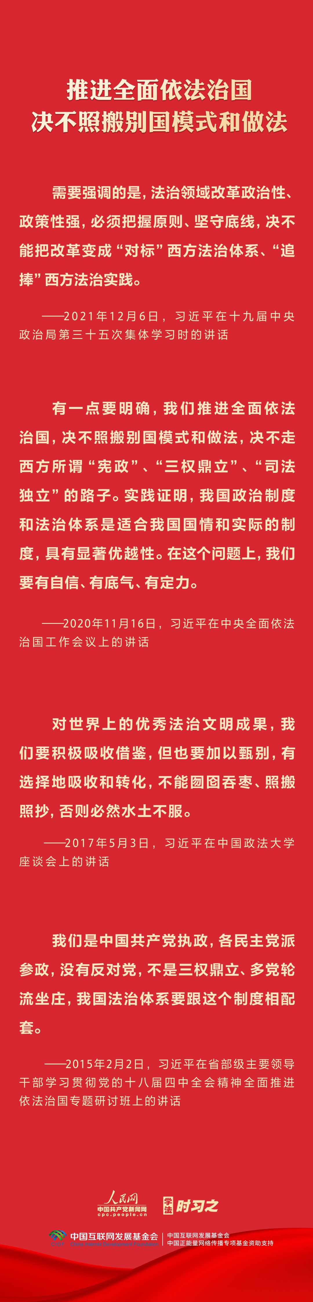 今年是貫徹落實黨的二十大精神的開局之年。中共中央政治局決定從今年4月開始,在全黨自上而下開展學(xué)習(xí)貫徹習(xí)近平新時代中國特色社會主義思想主題教育。習(xí)近平法治思想是習(xí)近平新時代中國特色社會主義思想的重要組成部分,人民網(wǎng)·中國共產(chǎn)黨新聞網(wǎng)推出學(xué)法時習(xí)之·學(xué)習(xí)習(xí)近平法治思想系列策劃,本篇聚焦“堅持中國特色社會主義法治道路”。