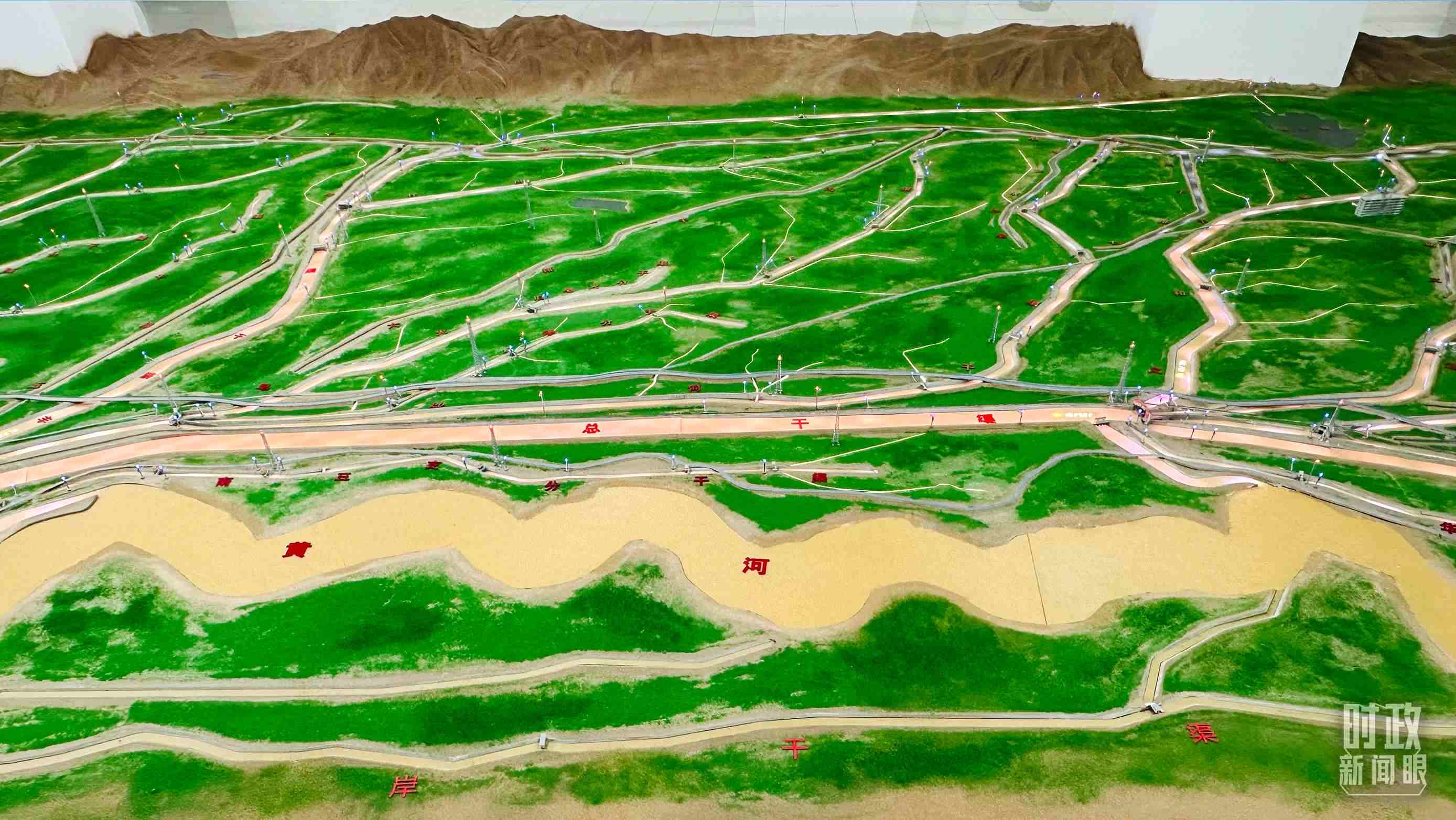 △河套灌區(qū)水量信息化監(jiān)測(cè)中心沙盤。(總臺(tái)央視記者范一鳴拍攝)