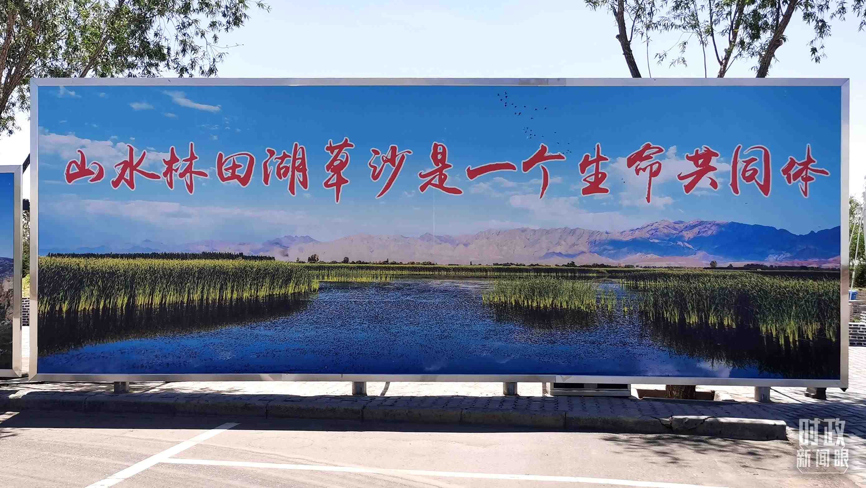 △巴彥淖爾當(dāng)?shù)貥?biāo)語牌。(總臺(tái)央視記者楊波拍攝)