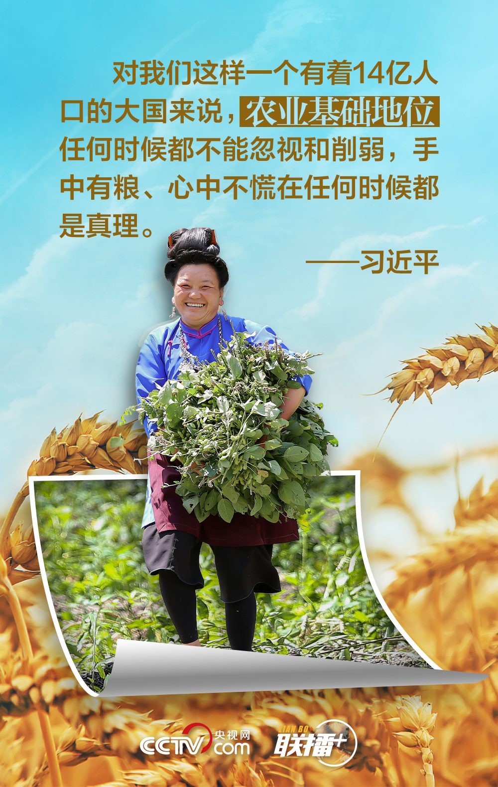 夏糧是全年糧食生產(chǎn)的第一季,約占我國(guó)全年糧食產(chǎn)量的五分之一,主要包括夏收的谷物、豆類和薯類等。“手中有糧,心中不慌。”習(xí)近平總書記十分重視糧食安全,他強(qiáng)調(diào),中國(guó)人的飯碗任何時(shí)候都要牢牢端在自己手中,飯碗主要裝中國(guó)糧。值此夏收時(shí)節(jié),央視網(wǎng)《聯(lián)播+》與您一起學(xué)習(xí)領(lǐng)悟總書記的糧食觀。