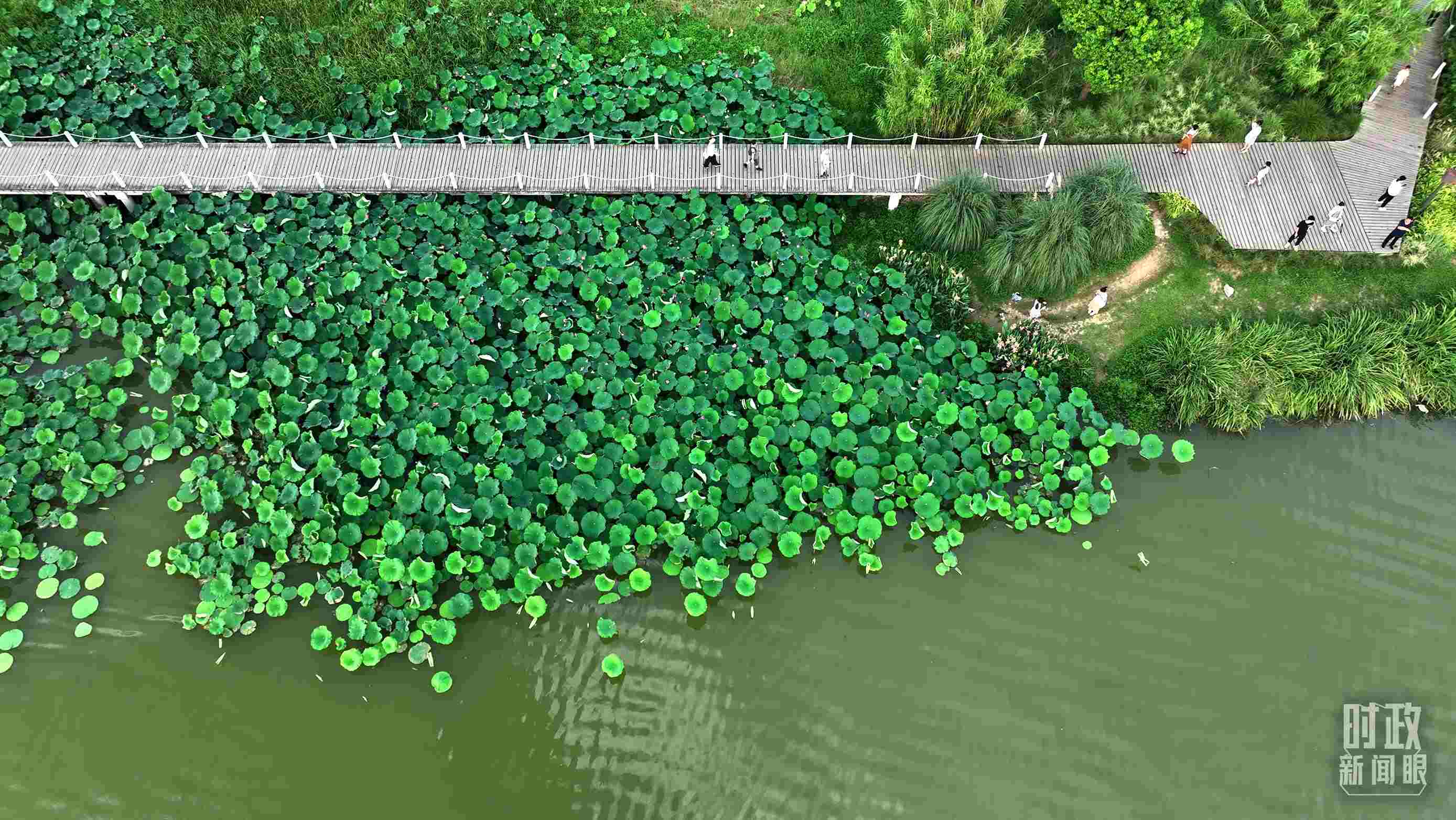 △天漢濕地公園內(nèi),游人穿行,荷影婆娑。(總臺記者劉海濤拍攝)