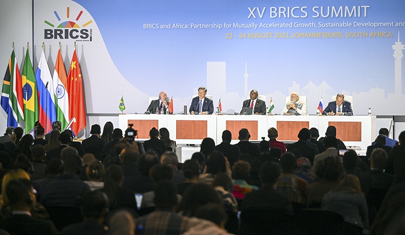 當?shù)貢r間8月24日上午,在金磚國家同非洲國家及其他新興市場和發(fā)展中國家領(lǐng)導(dǎo)人對話會上,習(xí)近平主席發(fā)出倡議,“攜手構(gòu)建發(fā)展共同體,不讓任何一個國家在世界現(xiàn)代化進程中掉隊!”