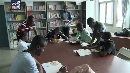 △漢語(yǔ)愛(ài)好者在恩古瓦比大學(xué)圖書(shū)館中國(guó)館里學(xué)習(xí)。