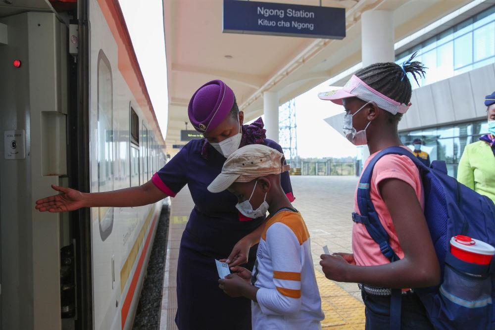 △2022年3月25日,乘客在肯尼亞蒙內(nèi)鐵路恩貢站排隊(duì)上車(chē)。
