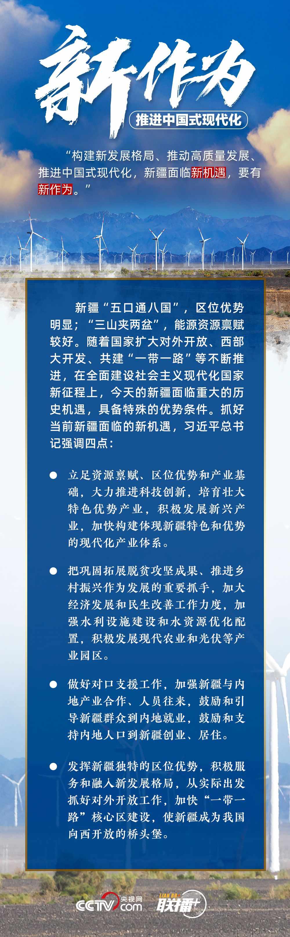 講話中,習(xí)近平總書記對(duì)做好新疆工作提出一系列重要要求。央視網(wǎng)《聯(lián)播+》特?cái)X取總書記講話中的關(guān)鍵要點(diǎn),與您一起學(xué)習(xí)。