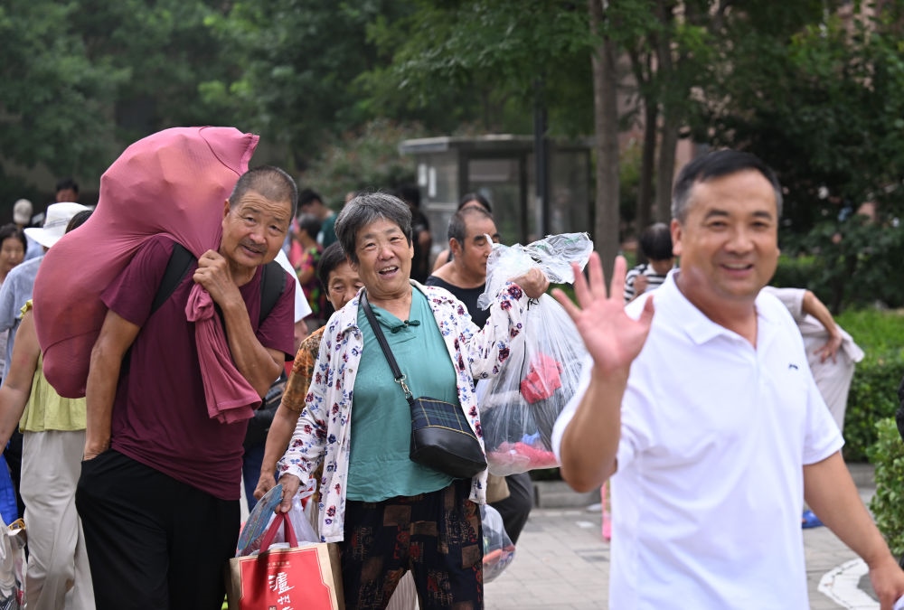8月20日,在天津市西青區(qū)赤龍南街道一臨時安置點(diǎn),村民收拾行李準(zhǔn)備回家。當(dāng)日,天津市靜海區(qū)東淀蓄滯洪區(qū)37000余名轉(zhuǎn)移安置人員全部返回臺頭鎮(zhèn)、獨(dú)流鎮(zhèn)、王口鎮(zhèn)等地。