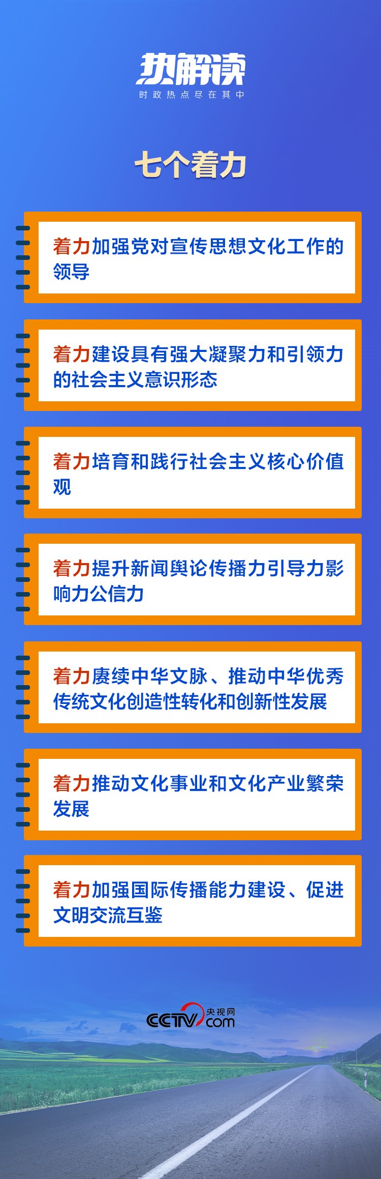 在這次對宣傳思想文化工作的重要指示中,總書記提出了“七個著力”的重要要求,為新時代文化建設明確了路線圖和任務書。