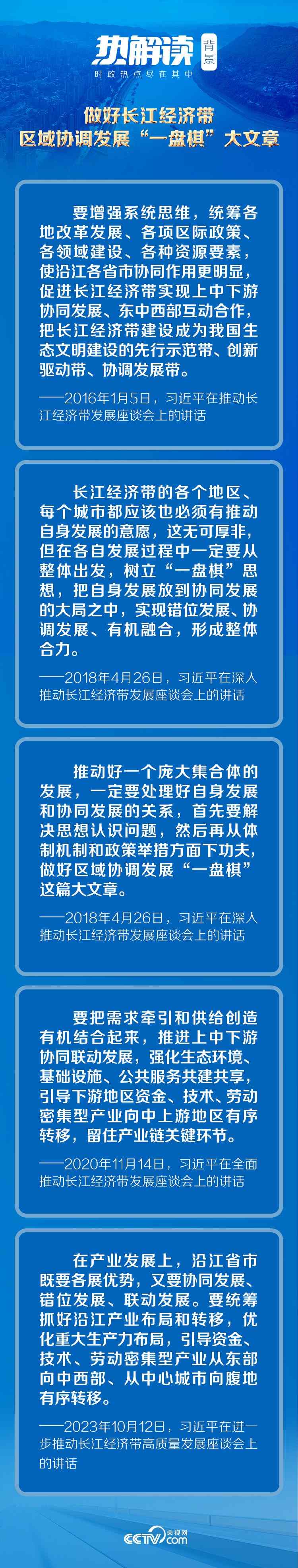 沿江省市如何把自身發(fā)展投入?yún)f(xié)同發(fā)展大局,實(shí)現(xiàn)錯(cuò)位發(fā)展、協(xié)調(diào)發(fā)展、有機(jī)融合,形成整體合力?總書(shū)記在此次座談會(huì)上對(duì)沿江省市提出16字鮮明要求——“省際共商、生態(tài)共治、全域共建、發(fā)展共享”。