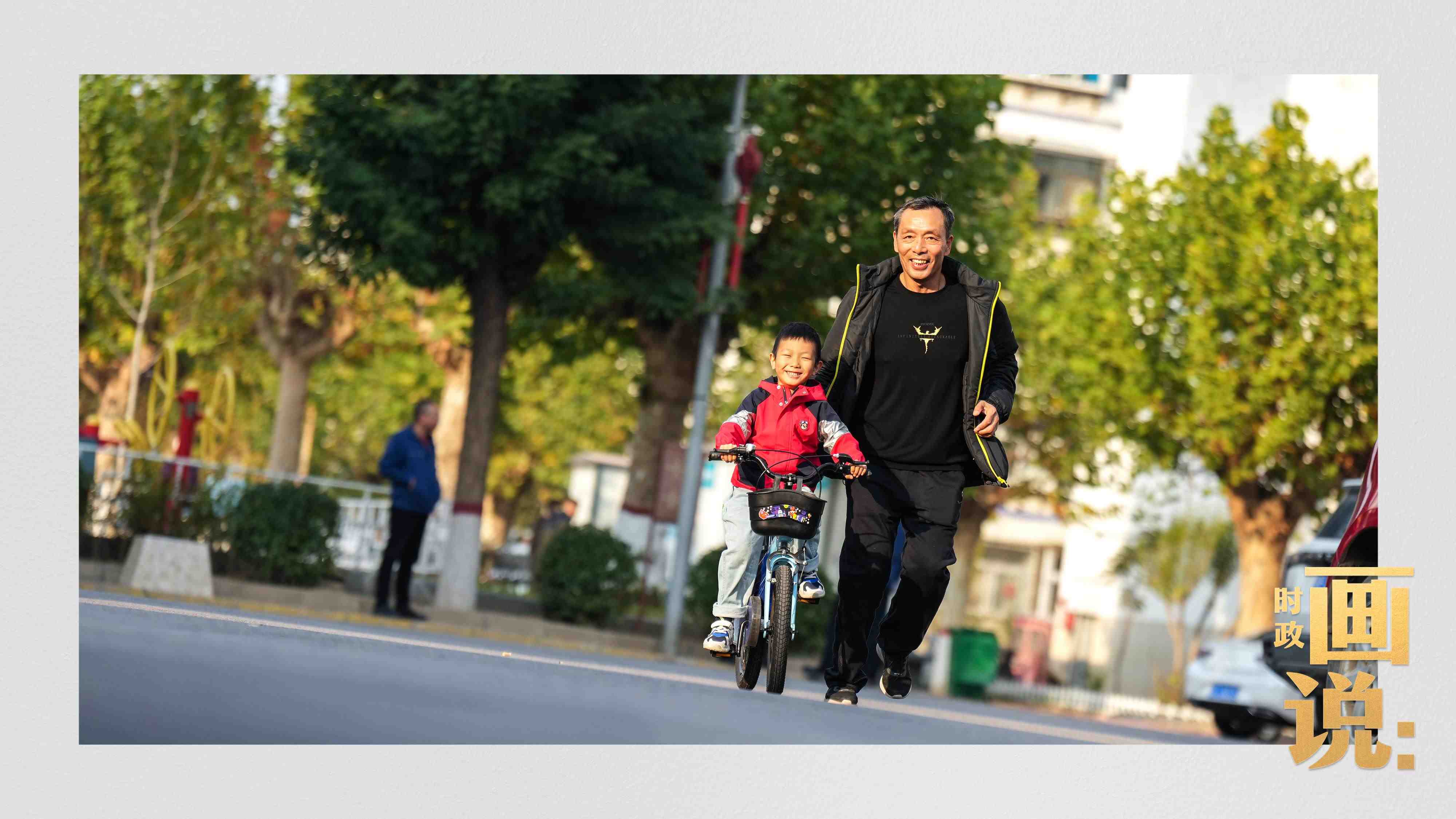 △學騎自行車的爺孫倆其樂融融。冬日的暖陽留在身上,會心的笑容掛在臉上。永濟秀園小區(qū),涿州。
