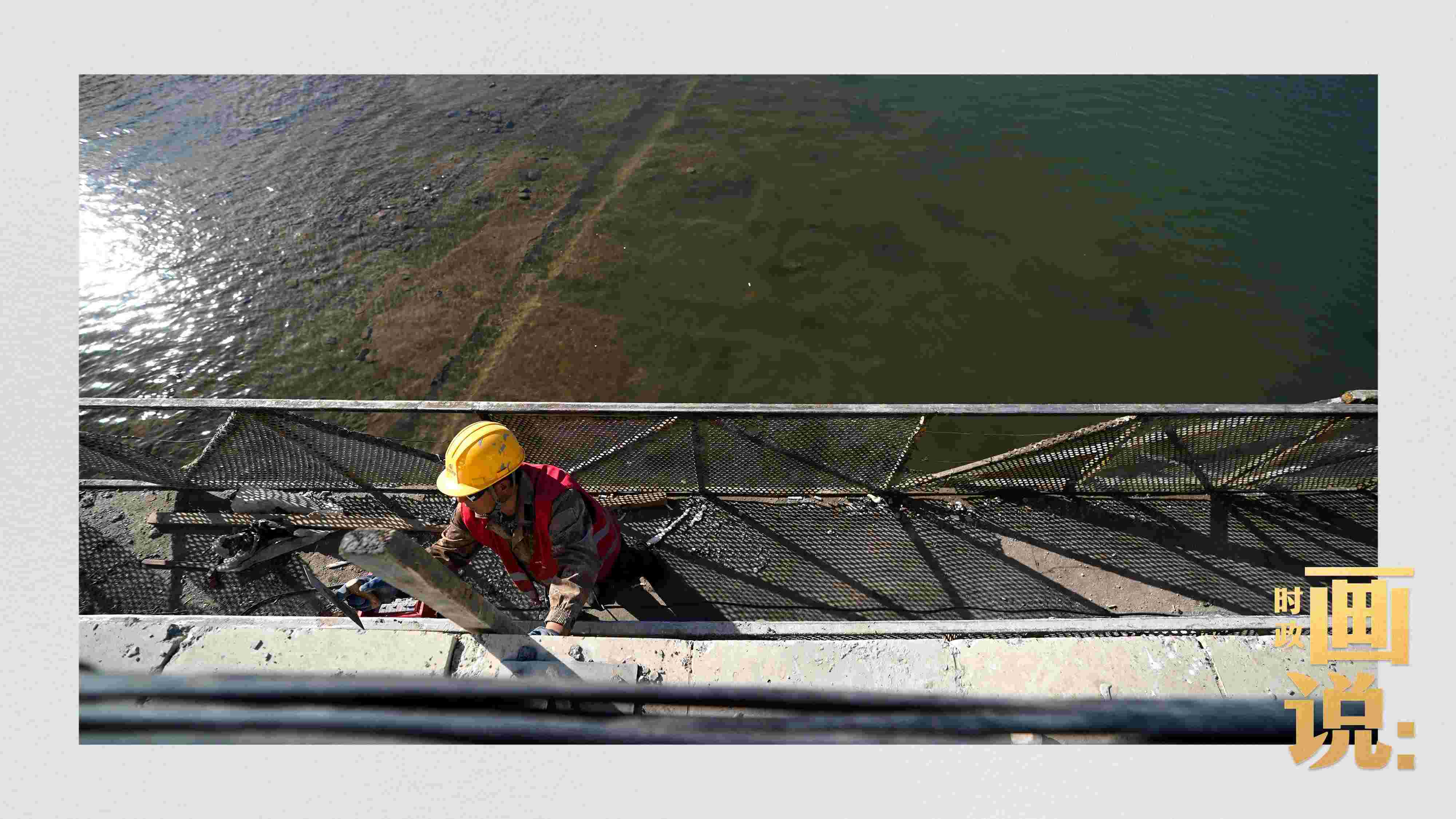 △工人在重新加固的橋梁上加裝路燈。水峪嘴村,北京。冬日里的永定河靜靜流淌,一度受災嚴重的流域沿線正在重回平靜。