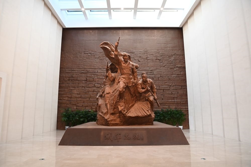 ↑鹽城新四軍紀(jì)念館內(nèi)陳列的雕像(2023年11月24日攝)。