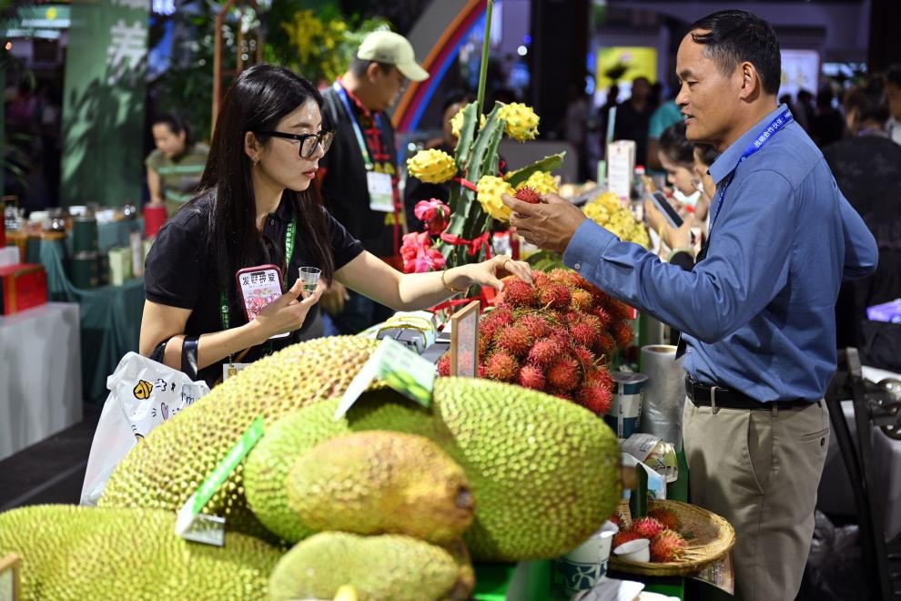 2023年12月14日,第26屆中國(海南)國際熱帶農(nóng)產(chǎn)品冬季交易會(huì)展出的熱帶水果。新華社記者郭程 攝