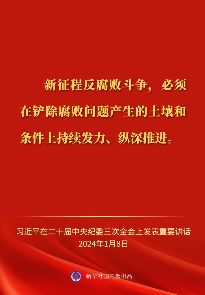 ??中共中央總書記、國(guó)家主席、中央軍委主席習(xí)近平8日上午在中國(guó)共產(chǎn)黨第二十屆中央紀(jì)律檢查委員會(huì)第三次全體會(huì)議上發(fā)表重要講話,一起來(lái)看金句?! ?/p>