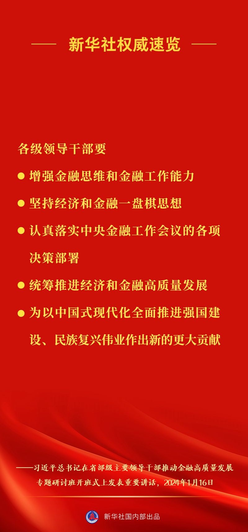 習(xí)近平總書記16日上午在省部級主要領(lǐng)導(dǎo)干部推動金融高質(zhì)量發(fā)展專題研討班開班式上發(fā)表重要講話,一起來看講話要點(diǎn)。