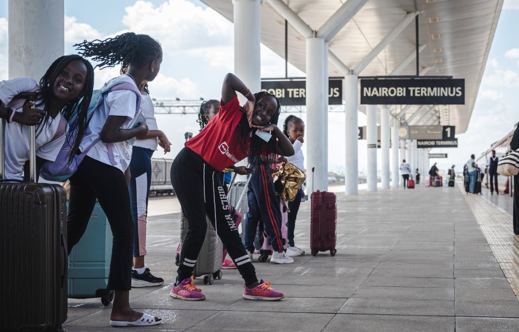 2023年10月6日,兒童在肯尼亞內(nèi)羅畢的蒙內(nèi)鐵路內(nèi)羅畢站內(nèi)等待登車(chē)。