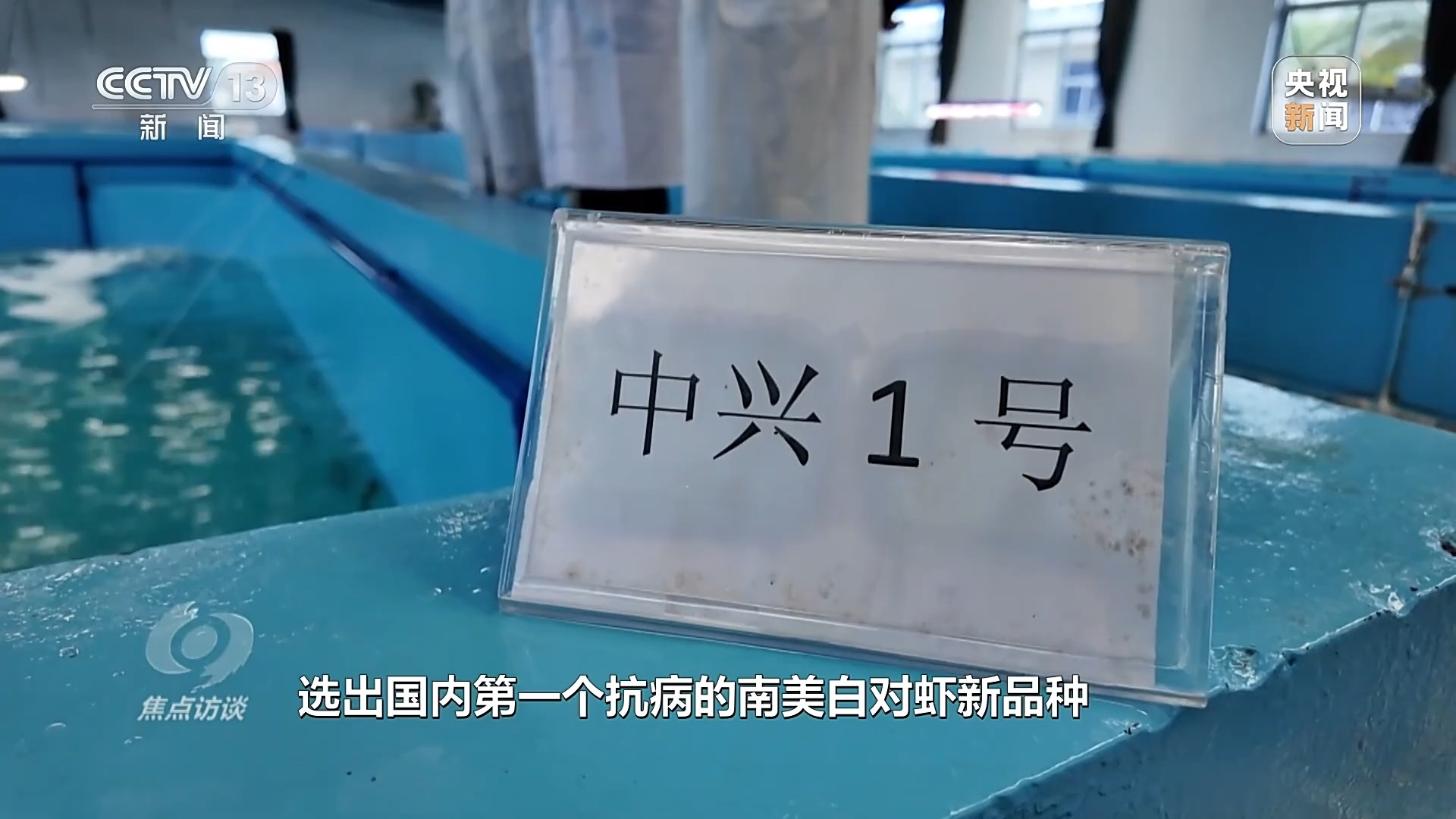 陳奕彬:“基地聯(lián)合中山大學(xué),從多個區(qū)域引進(jìn)多個種群,組成一個選育的基礎(chǔ)群體,又開始經(jīng)過一代群體選育,加上五代的家系選育,歷經(jīng)大概八代、十年的時間,終于在2011年的時候選出國內(nèi)第一個抗病的南美白對蝦新品種:中興1號?!?/p>