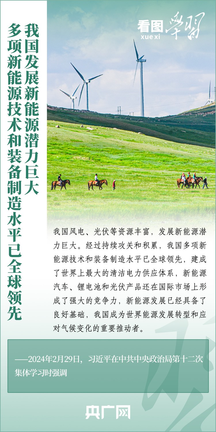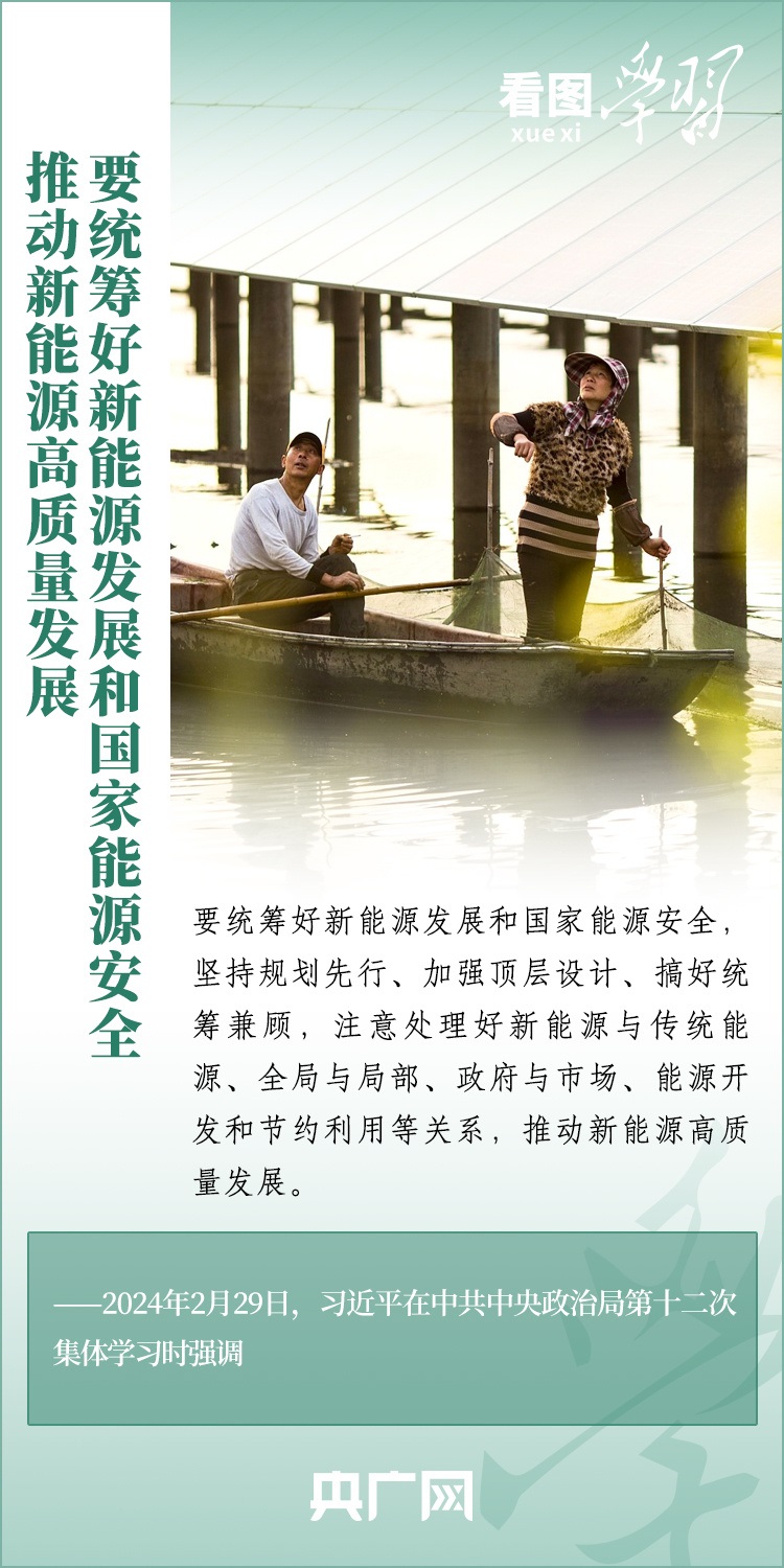 能源安全事關(guān)經(jīng)濟(jì)社會發(fā)展全局。2月29日,習(xí)近平總書記在中共中央政治局第十二次集體學(xué)習(xí)時強(qiáng)調(diào),我們要順勢而為、乘勢而上,以更大力度推動我國新能源高質(zhì)量發(fā)展,為中國式現(xiàn)代化建設(shè)提供安全可靠的能源保障,為共建清潔美麗的世界作出更大貢獻(xiàn)。一起來學(xué)習(xí)!