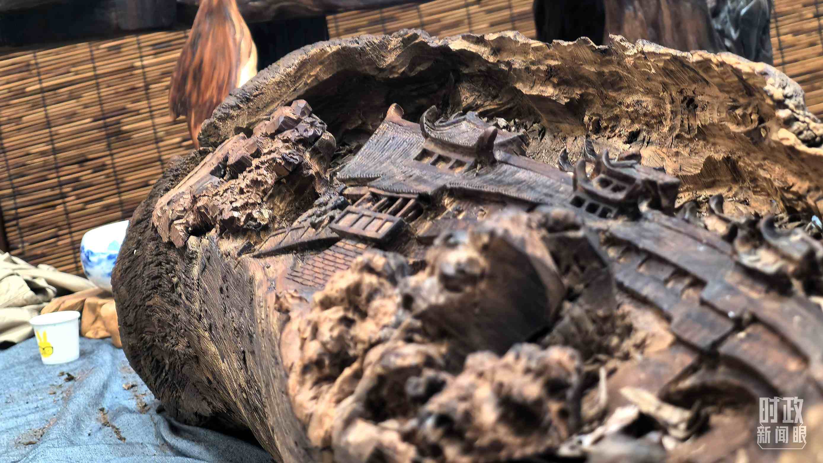 △常德河街鴛鴦走馬樓內(nèi)的常德高腔、常德木雕等非遺展示。(總臺央視記者郭鴻、央廣記者潘毅拍攝)