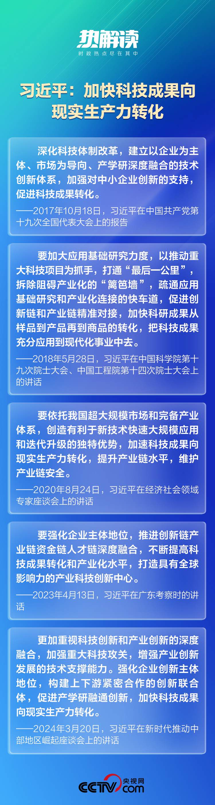 聽(tīng)取湖南省委和省政府的工作匯報(bào),總書(shū)記再提新質(zhì)生產(chǎn)力,同樣提到科技成果轉(zhuǎn)化問(wèn)題:“促進(jìn)創(chuàng)新鏈產(chǎn)業(yè)鏈資金鏈人才鏈深度融合,推動(dòng)科技成果加快轉(zhuǎn)化為現(xiàn)實(shí)生產(chǎn)力。”