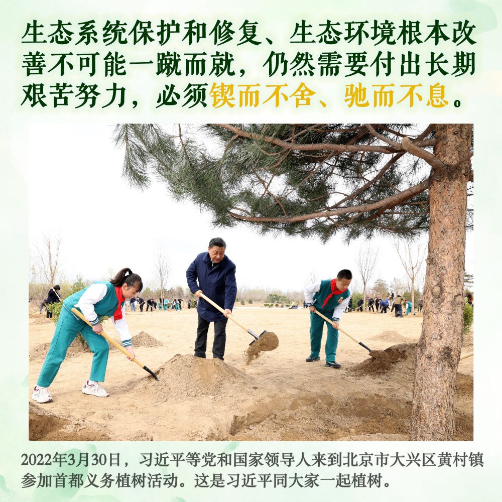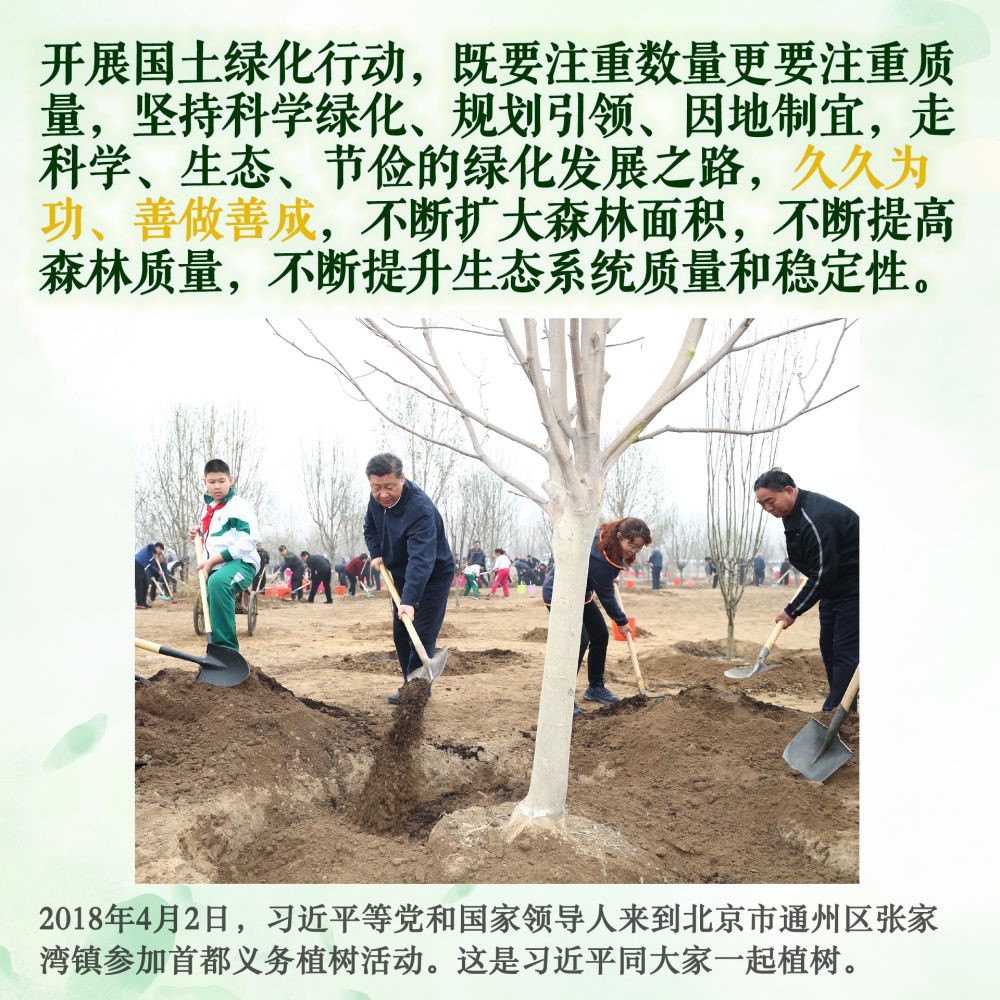 身體力行,持之以恒。此后的11個(gè)春天,無(wú)論晴雨,總書記都抽出時(shí)間加入植綠隊(duì)伍,并對(duì)國(guó)土綠化事業(yè)提出殷殷囑托。堅(jiān)持,是12年來(lái)總書記反復(fù)強(qiáng)調(diào)的關(guān)鍵內(nèi)涵。