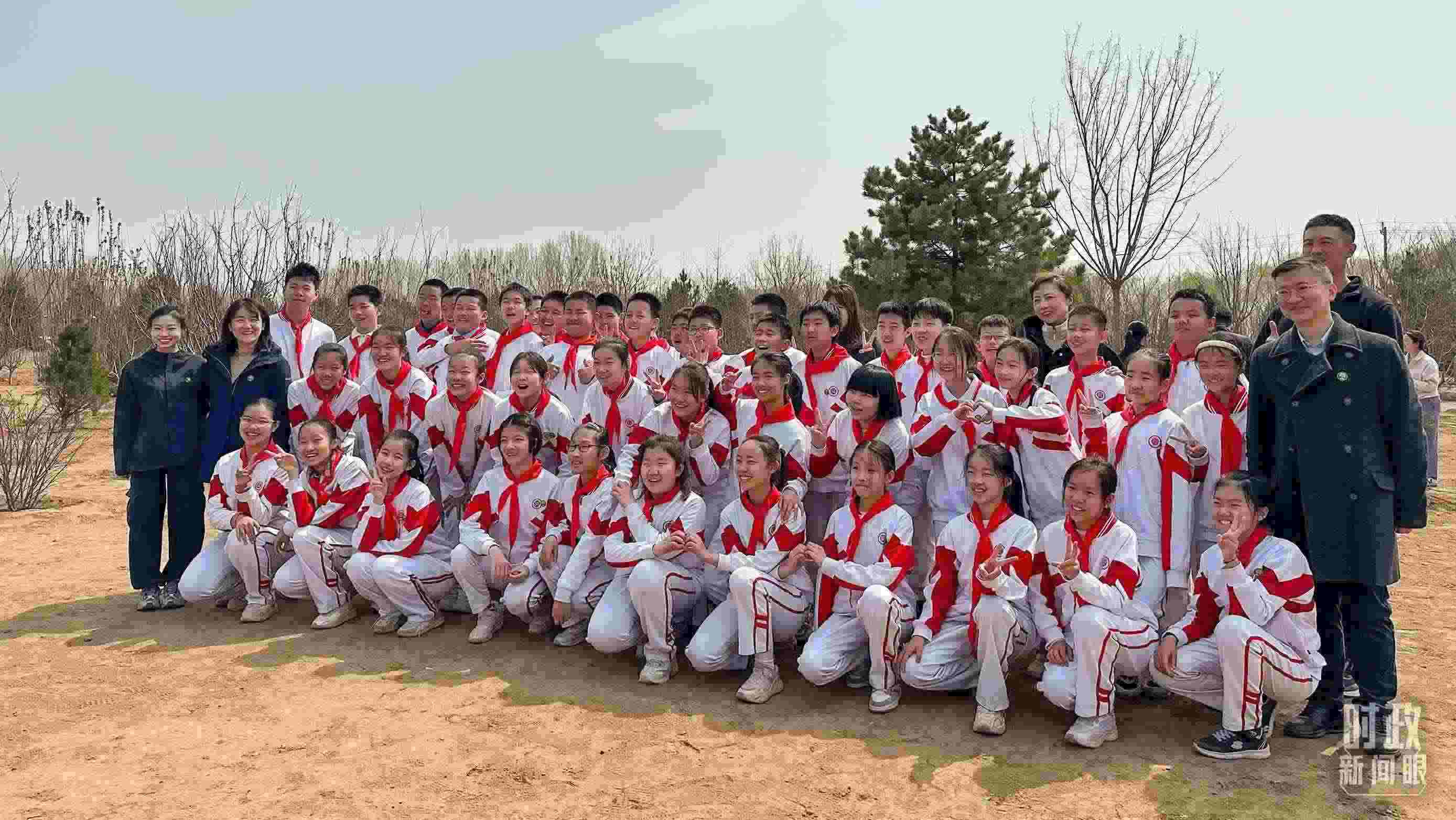 △參加植樹的少先隊(duì)員們合影留念。(總臺央視記者盧心雨拍攝)