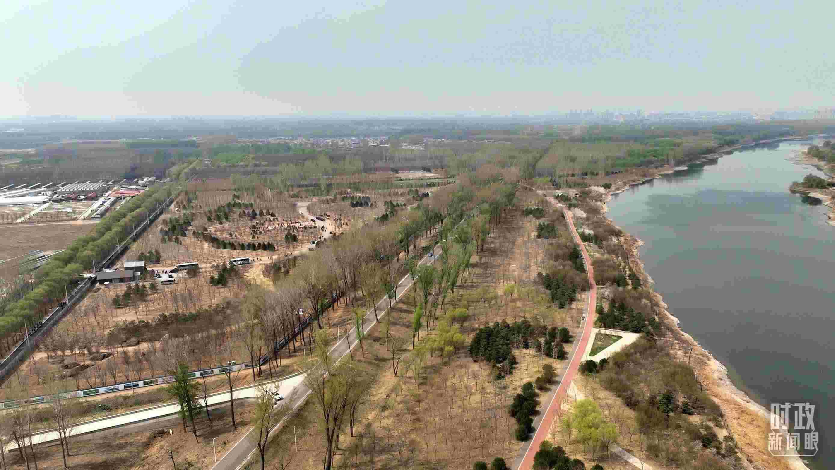 △遠(yuǎn)眺北京市通州區(qū)潞城鎮(zhèn)植樹點(diǎn)。(總臺央視記者劉岳拍攝)