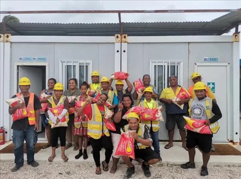 △中國(guó)企業(yè)為瑙魯當(dāng)?shù)貑T工發(fā)放節(jié)日慰問(wèn)品。