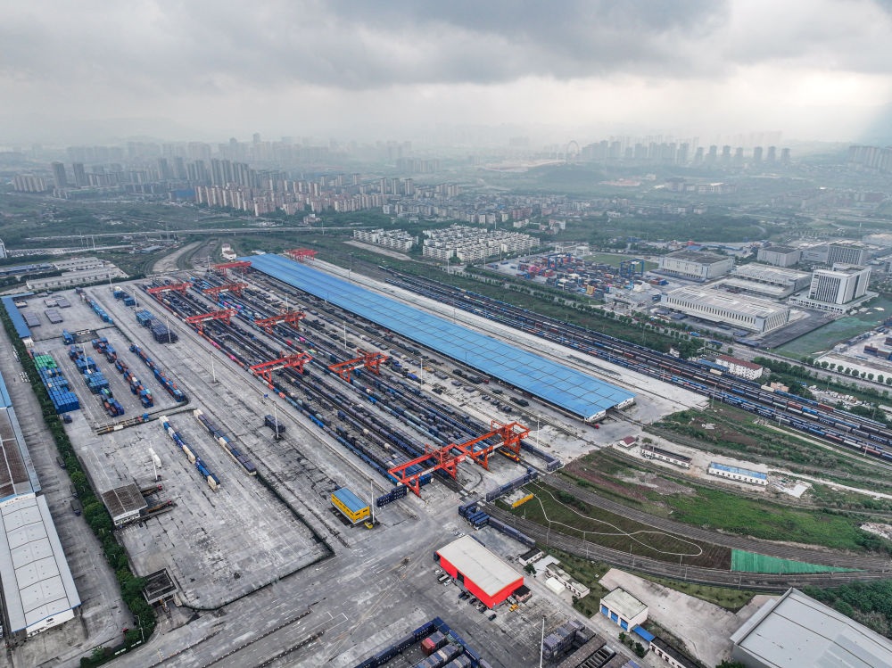 自重慶國際物流樞紐園區(qū)向北,一列列滿載貨物的中歐班列經新疆霍爾果斯口岸出境,聯(lián)結起區(qū)域開放發(fā)展之路。
