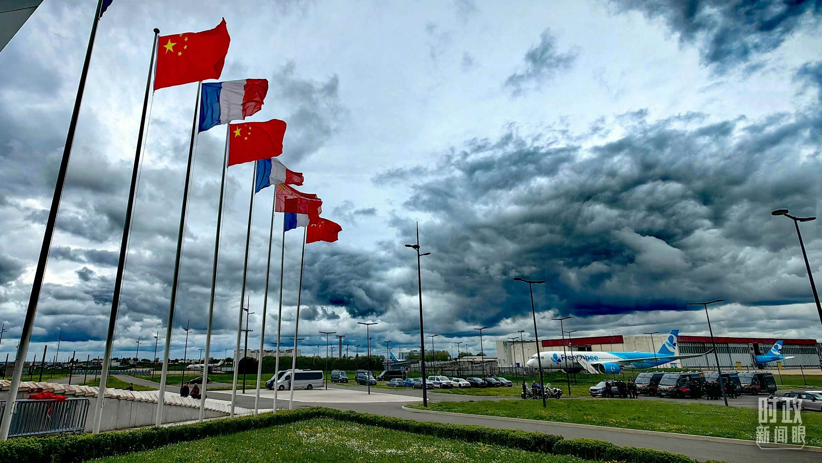 △巴黎奧利機場,中法兩國國旗迎風(fēng)招展。(總臺央視記者段德文拍攝)