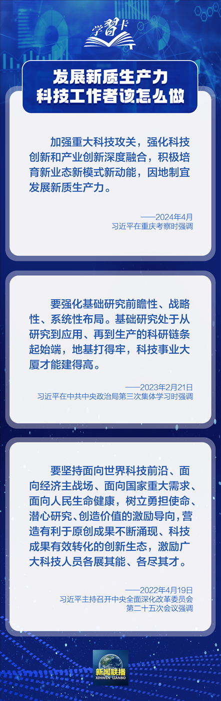 2024年5月30日是第八個(gè)“全國科技工作者日”。實(shí)現(xiàn)科技自立自強(qiáng)、建設(shè)世界科技強(qiáng)國,廣大科技工作者責(zé)任重大、使命光榮。培育發(fā)展新質(zhì)生產(chǎn)力的新動(dòng)能,廣大科技工作者可以怎么做?習(xí)近平總書記的一系列論述指明了方向。一起學(xué)習(xí)↓↓↓
