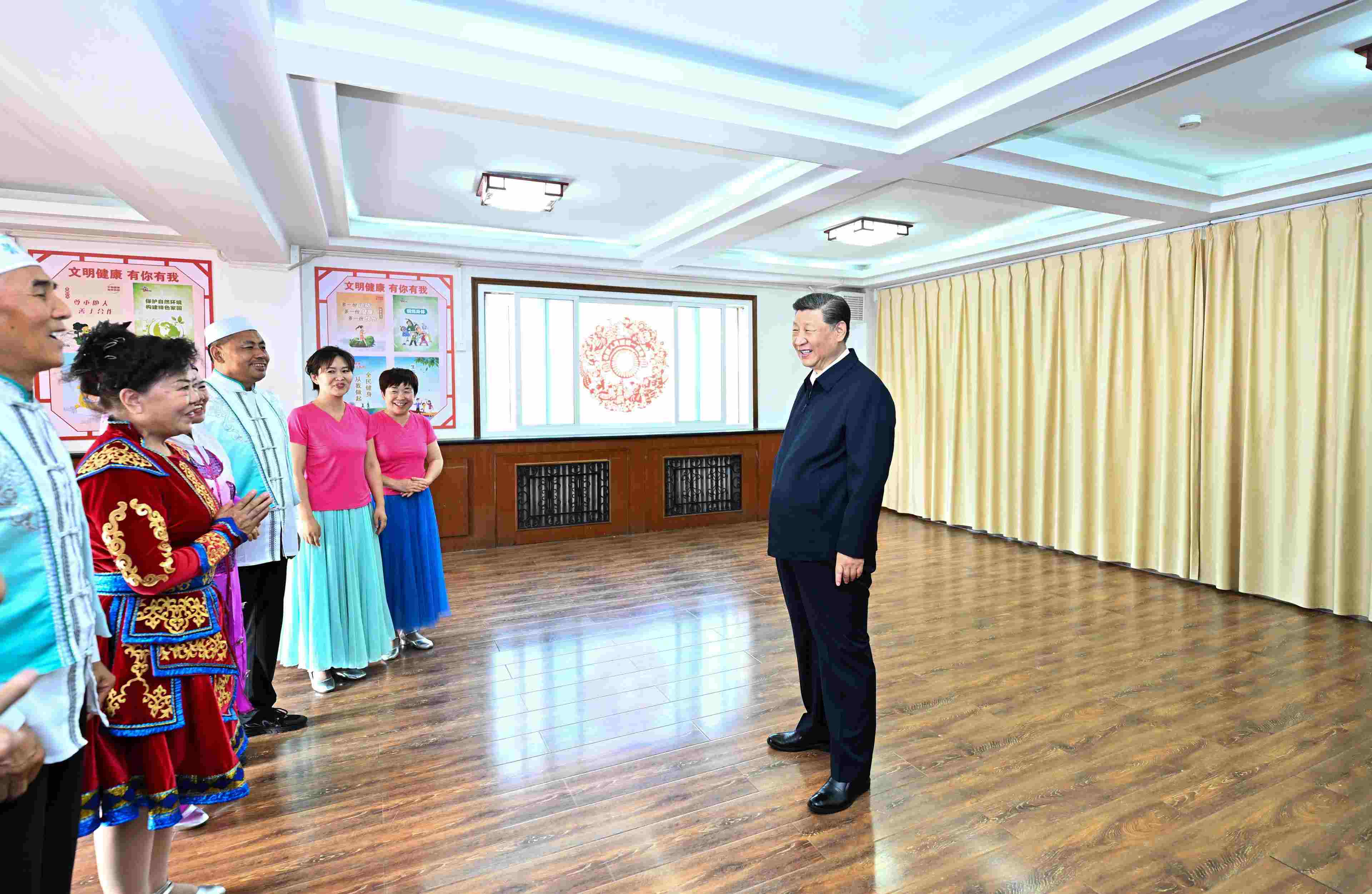 19 日下午,習(xí)近平總書記在寧夏回族自治區(qū)考察調(diào)研。他來到銀川市金鳳區(qū)長城花園社區(qū),了解社區(qū)發(fā)揮基層黨組織作用、優(yōu)化便民惠民服務(wù)、推動各族群眾交往交流交融等情況。(杜尚澤)