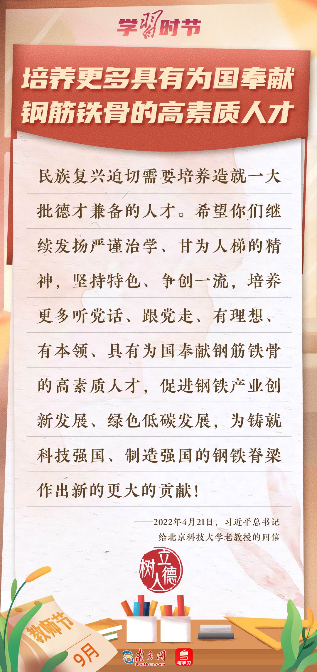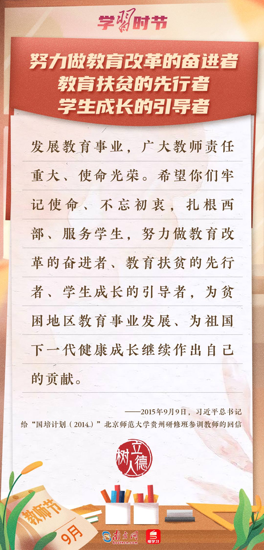 “百年大計,教育為本。教育大計,教師為本?!秉h的十八大以來,習(xí)近平總書記多次以書信形式向教師群體和教育工作者表達囑托與期望,諄諄話語,催人奮進。在第四十個教師節(jié)到來之際,讓我們一起重溫總書記的諄諄寄語!