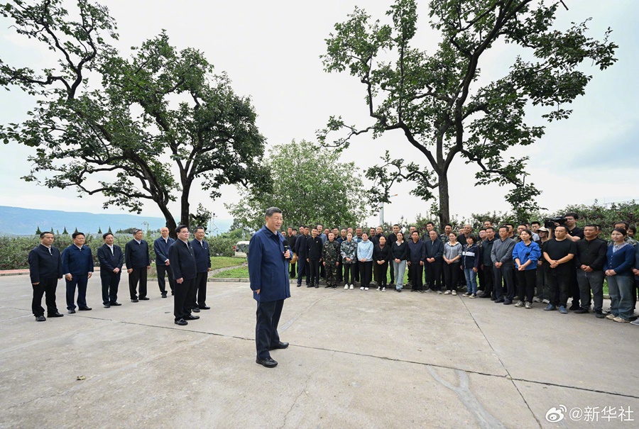 11日上午,習(xí)近平總書記來到甘肅天水市麥積區(qū)南山花牛蘋果基地考察,走進(jìn)果林向現(xiàn)場(chǎng)的果農(nóng)、農(nóng)技人員等詳細(xì)詢問花牛蘋果品質(zhì)特色、種植技術(shù)、市場(chǎng)銷路等,并同鄉(xiāng)親們親切交流。習(xí)近平說,鄉(xiāng)村振興要靠產(chǎn)業(yè),各地要各展其長(zhǎng),走適合自己的振興道路。習(xí)近平勉勵(lì)鄉(xiāng)親們?cè)俳釉賲?,把蘋果產(chǎn)業(yè)做得更大更強(qiáng),過上更加幸福的生活。(文字記者:張曉松、朱基釵;攝影記者:鞠鵬、謝環(huán)馳)