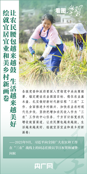 民族要復興,鄉(xiāng)村必振興。黨的十八大以來,每到各地考察調(diào)研,習近平總書記總會去農(nóng)村看一看,走進田間地頭,和農(nóng)民拉拉家常??倳洀娬{(diào),“建設(shè)宜居宜業(yè)和美鄉(xiāng)村是農(nóng)業(yè)強國的應有之義”,“要讓農(nóng)民腰包越來越鼓、生活越來越美好”。