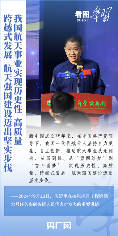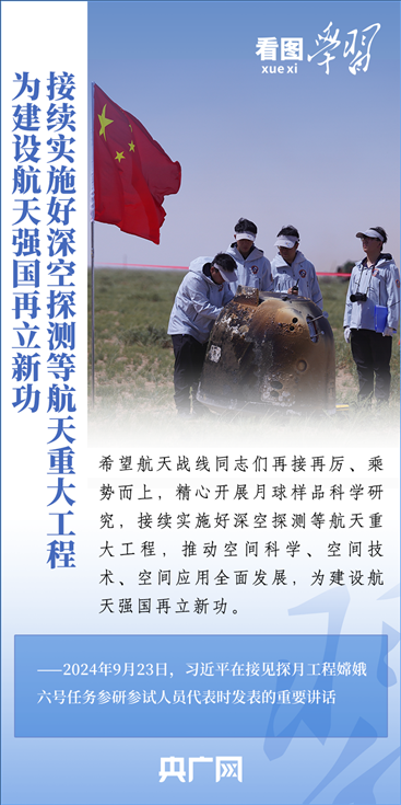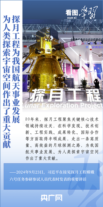 中國(guó)探月工程成果凝結(jié)著我國(guó)幾代航天人的智慧和心血。9月23日,習(xí)近平總書記接見(jiàn)探月工程嫦娥六號(hào)任務(wù)參研參試人員代表并發(fā)表重要講話。總書記高度肯定嫦娥六號(hào)任務(wù)成功的重要意義,以及探月工程為我國(guó)航天事業(yè)發(fā)展、為人類探索宇宙空間作出的重大貢獻(xiàn),勉勵(lì)航天戰(zhàn)線工作者再接再厲、乘勢(shì)而上,為建設(shè)航天強(qiáng)國(guó)再立新功。一起來(lái)學(xué)習(xí)!