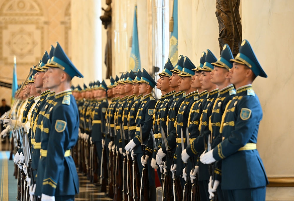 當(dāng)?shù)貢r(shí)間3日,國家主席習(xí)近平在阿斯塔納出席哈薩克斯坦總統(tǒng)托卡耶夫舉行的歡迎儀式。