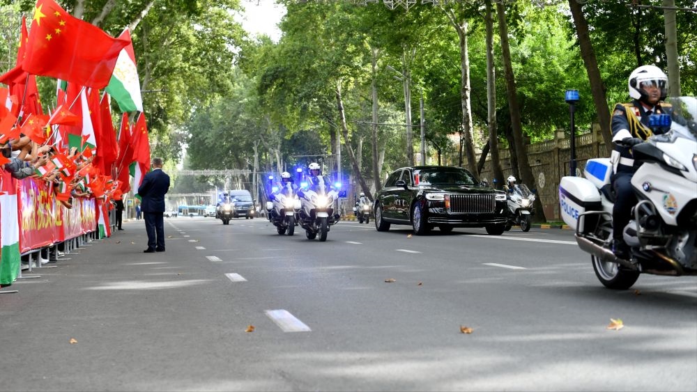 赴機(jī)場途中,當(dāng)?shù)厝A僑華人和中資機(jī)構(gòu)代表在道路兩旁揮舞中塔兩國國旗,祝賀習(xí)近平主席對塔吉克斯坦國事訪問取得圓滿成功。