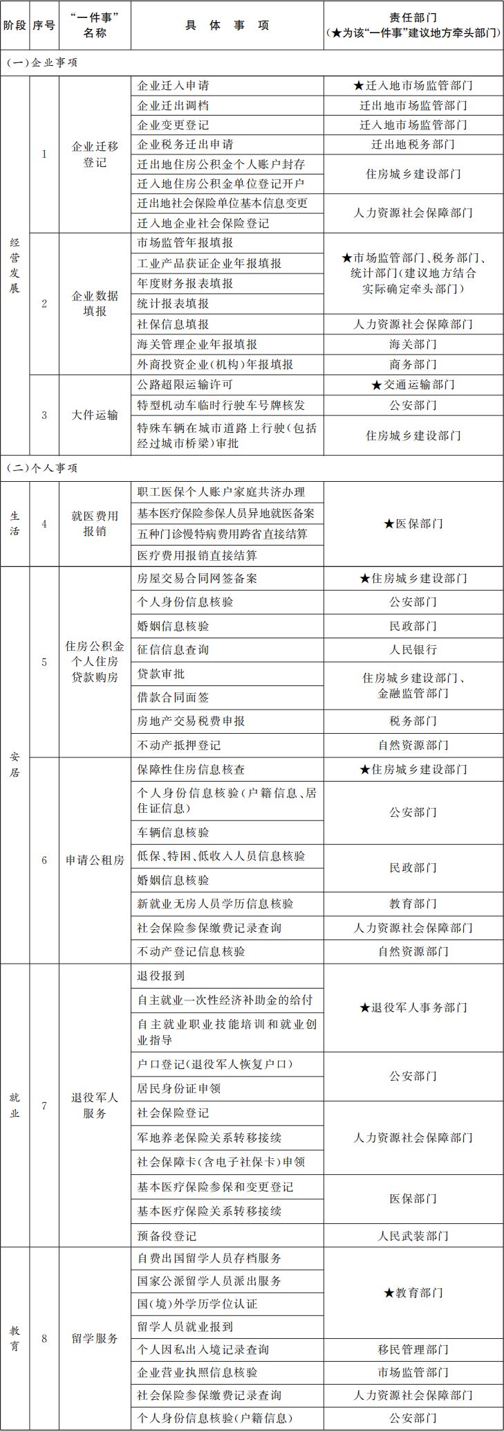 其中,屬于經(jīng)營主體辦事的有3項,包括企業(yè)遷移登記、企業(yè)數(shù)據(jù)填報、大件運輸?shù)取耙患隆?。屬于個人辦事的有5項,包括就醫(yī)費用報銷、住房公積金個人住房貸款購房、申請公租房、退役軍人服務、留學服務等“一件事”。