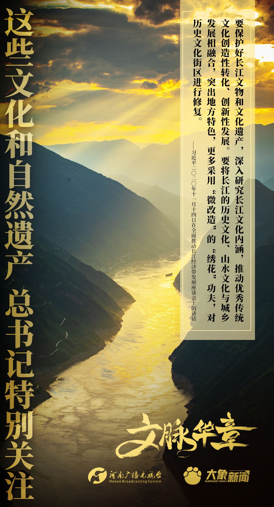 黨的十八大以來(lái),習(xí)近平總書(shū)記對(duì)歷史文化遺產(chǎn)和自然遺產(chǎn)的保護(hù)、傳承、利用高度重視,進(jìn)行了一系列考察調(diào)研,作出一系列重要講話重要指示。大象新聞為您梳理,邀您一起學(xué)習(xí)、領(lǐng)悟、踐行。