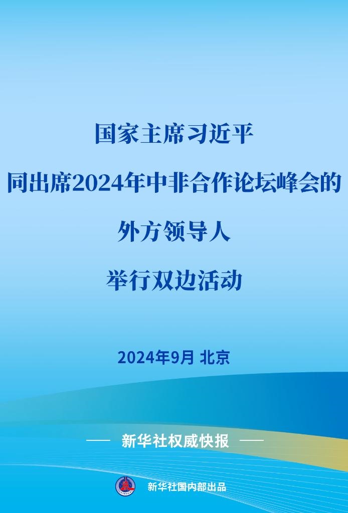 國(guó)家主席習(xí)近平將于9月5日出席峰會(huì)開幕式并發(fā)表主旨講話。峰會(huì)期間,習(xí)近平主席還將為應(yīng)邀與會(huì)的中非合作論壇非方成員領(lǐng)導(dǎo)人、有關(guān)非洲地區(qū)組織和國(guó)際組織代表等舉行歡迎宴會(huì)和相關(guān)雙邊活動(dòng)。