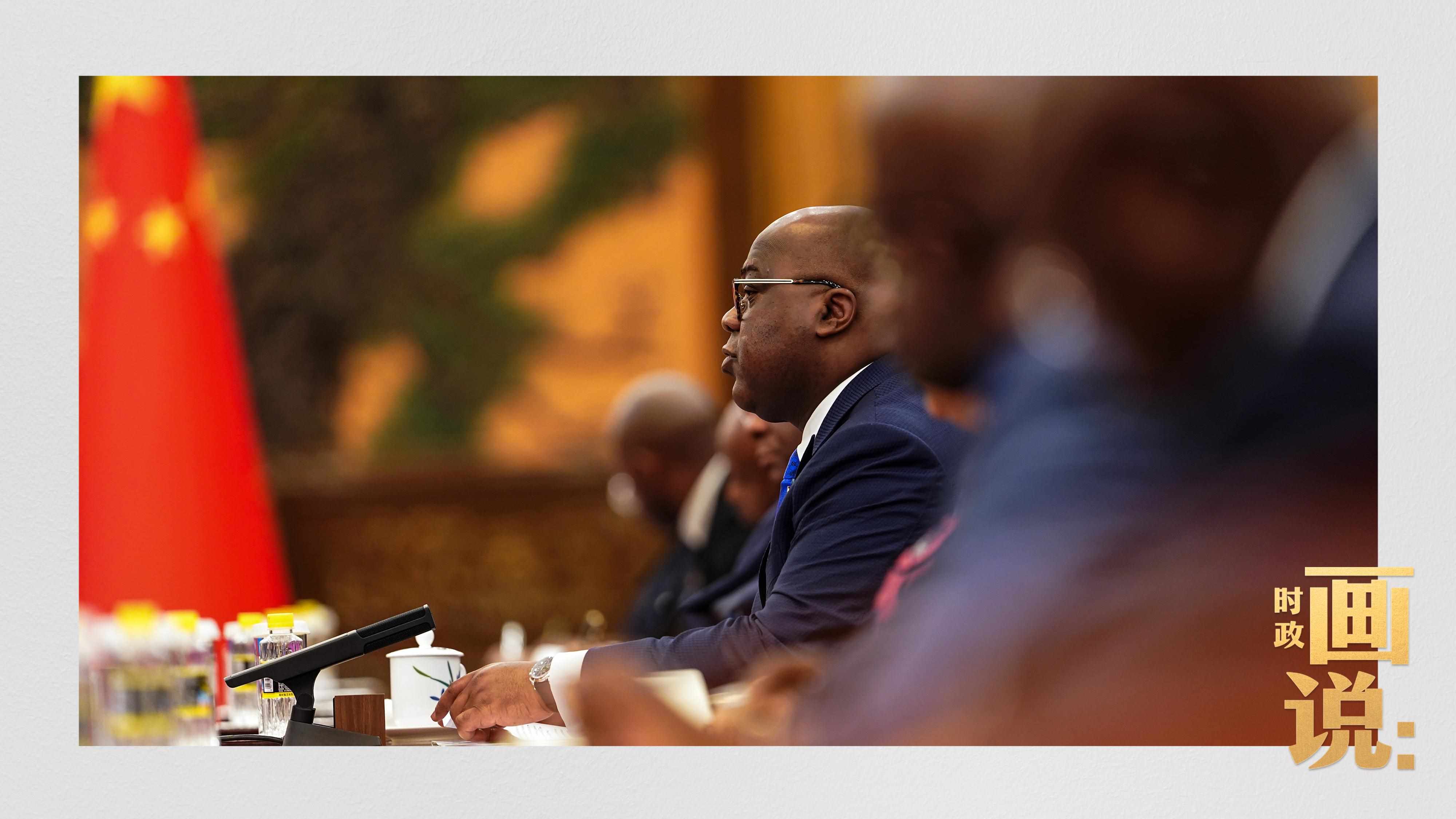 △剛果(金)總統(tǒng)齊塞克迪走向會見廳,這是習(xí)近平主席在峰會期間舉行的首場雙邊會見。