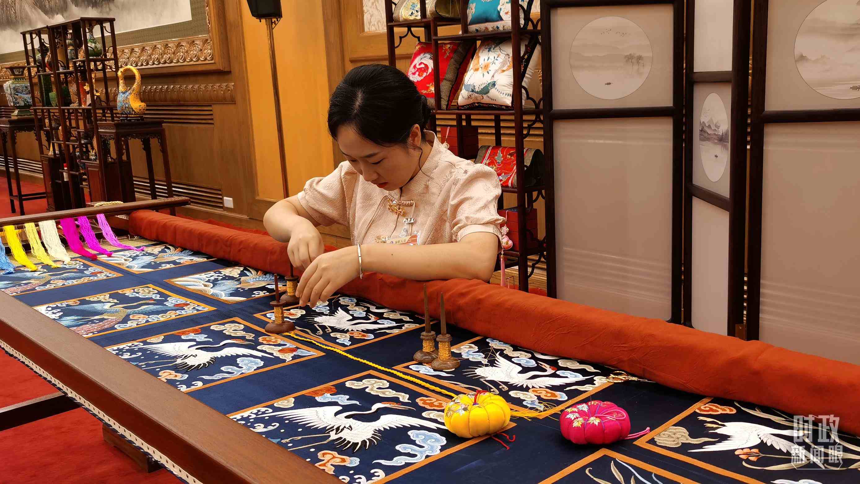 △外賓休息室內(nèi)的非遺展示。(總臺(tái)央視記者王曉東、郭鴻拍攝)